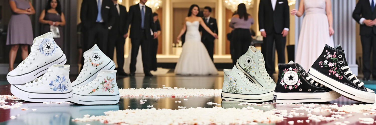 Choose the embroidered Converse style you like best from our collection. Each design is handmade and unique, so you can pick the one that matches your holiday vibe or personal style.