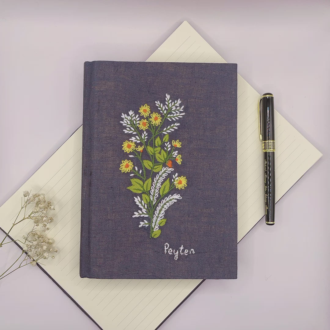 The notebook is carefully cared for by us from the outside to the inside. The outside is cardboard wrapped in fabric and is embroidered by hand, inside is high quality brown kraft paper or cream white paper.