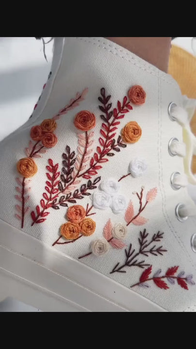 The shoes mix style, comfort, and unique handmade art. If you want footwear that feels special, these sneakers are a perfect choice. Add color and creativity to your closet with Burnt Orange Bouquet Embroidered Shoes. Show off your love for floral patterns and one-of-a-kind fashion at any event.