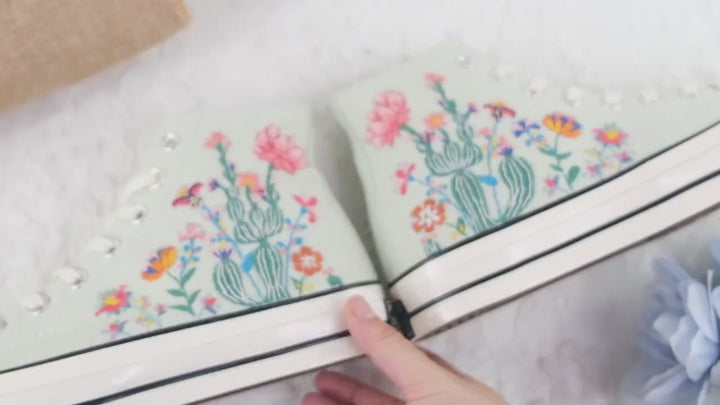 Converse Hand-Embroidered Floral Cactus Hand-Stitched Shoes