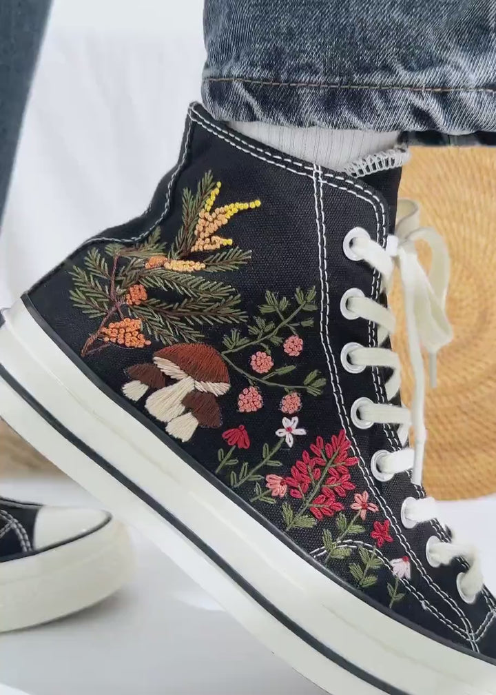 Converse Hand-Embroidered Mushroom Garden High Tops