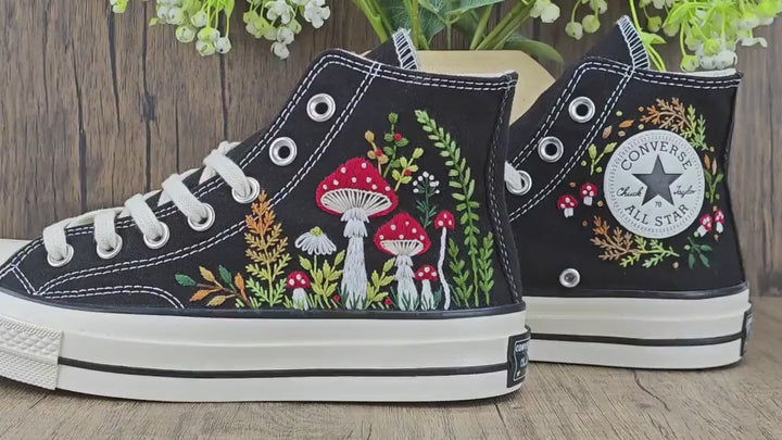 Versatile and eye-catching, the Converse Mushroom Embroidered High-Top Sneakers are perfect for both fashion enthusiasts and anyone looking to add a touch of artistry to their collection. They also make a fantastic gift for friends and family who appreciate unique, handcrafted items.