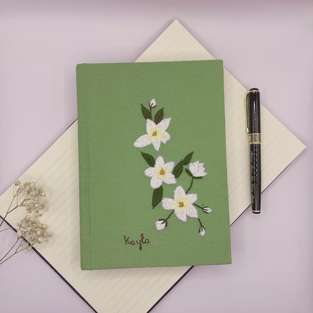Custom Journal: Botanical Whispers Embroidered Notebook