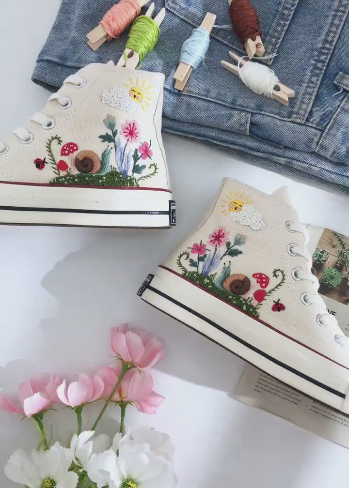 Converse Hand-Embroidered Mushroom Shoes for Ladies