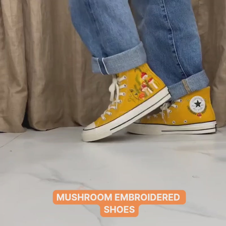 Mushrooms Embroidered Sneakers work well with jeans, skirts, or casual outfits. They add a playful touch to any look. These shoes are perfect for mushroom lovers and fans of handcrafted fashion. They also make a thoughtful gift for birthdays, graduations, or special occasions.
