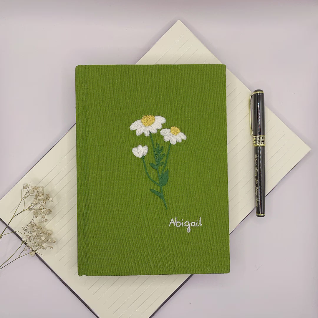 The notebook is carefully cared for by us from the outside to the inside. The outside is cardboard wrapped in fabric and is embroidered by hand, inside is high quality brown kraft paper or cream white paper.
