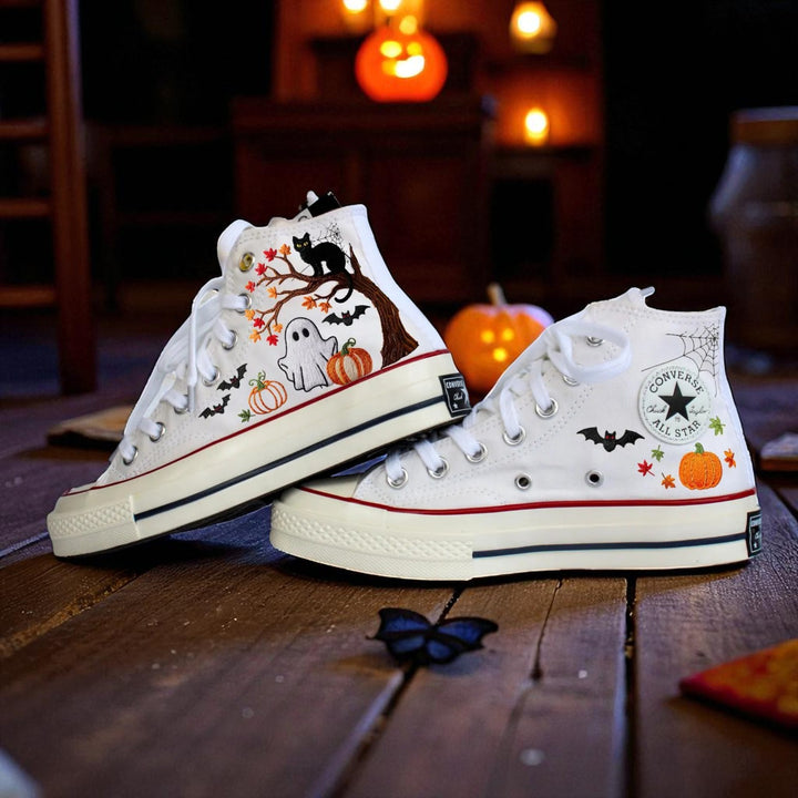 Tặng một đôi Converse thêu hình quả bí ngô cho người yêu mùa thu và Halloween. Hãy tự thưởng cho mình những đôi giày thời trang, thu hút mọi ánh nhìn. Stitchery Zone cung cấp các sản phẩm thêu chất lượng cao, tùy chỉnh theo phong cách riêng của bạn. Thêm chút điểm nhấn lễ hội cho bộ trang phục thường ngày của bạn với những đôi giày này.